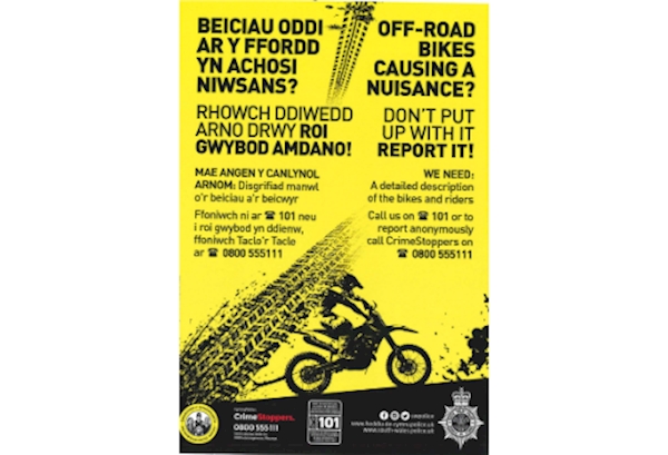 Annwyl Preswylydd, Yn Nhowerton rydym newydd weld nifer o feiciau off-road a beiciau trydan yn gyrru mewn modd peryglus, mae'r modd y mae'r beiciau wedi cael ei yrru yn dod o dan ymddygiad gwrthymdeithasol.